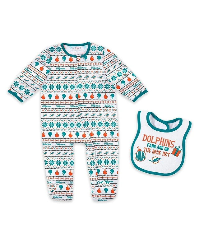 Wear by Erin Andrews 2-Piece Baby Boys and Girls Miami Dolphins Allover Print Full-Zip Sleeper Bib Set