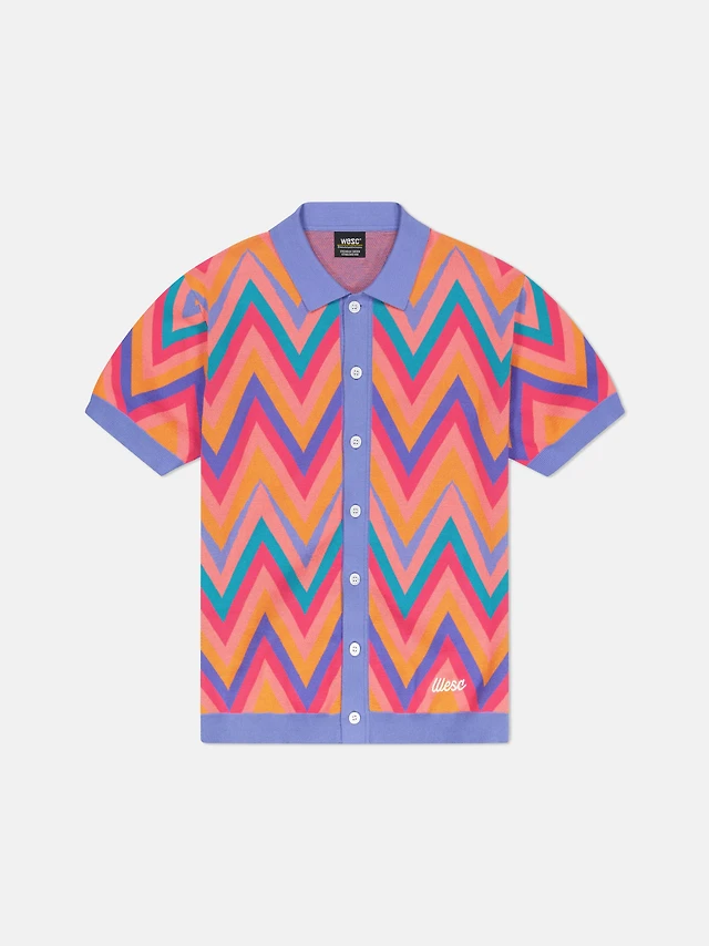 WeSC Teal Zigzag Short Sleeve Polo Cardigan