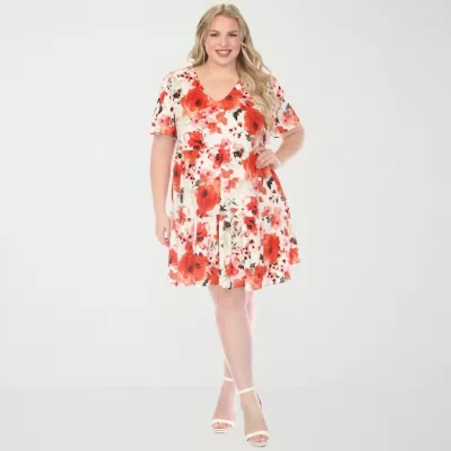White Mark Womens Plus Short Sleeve Midi A-Line Dress