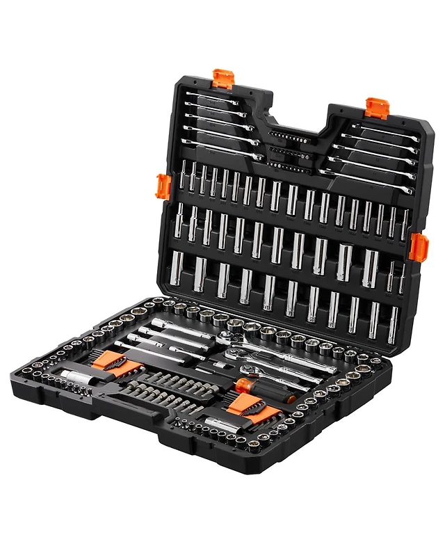 Mechanics Tool Set And Socket Set, Drive Deep And Standard Sockets, 205 Pcs Sae And Metric Mechanic Tool Kit With Bits, Combination Wrench, Hex Wrench