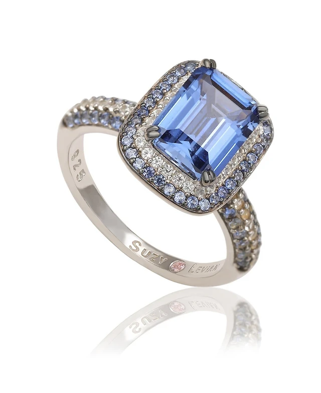 Suzy Levian Sterling Silver Assher Cut Sapphire and Created White Proposal Ring