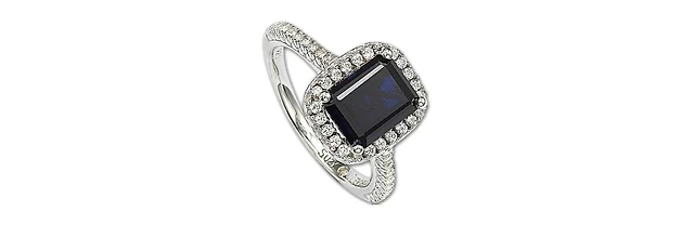 Suzy Levian Sterling Silver Large Emerald-Cut Cubic Zirconia Halo Ring