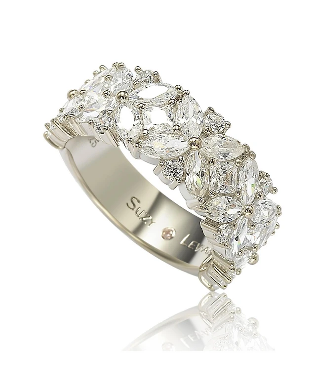 Suzy Levian Sterling Silver Cubic Zirconia Double Floral Eternity Band Ring