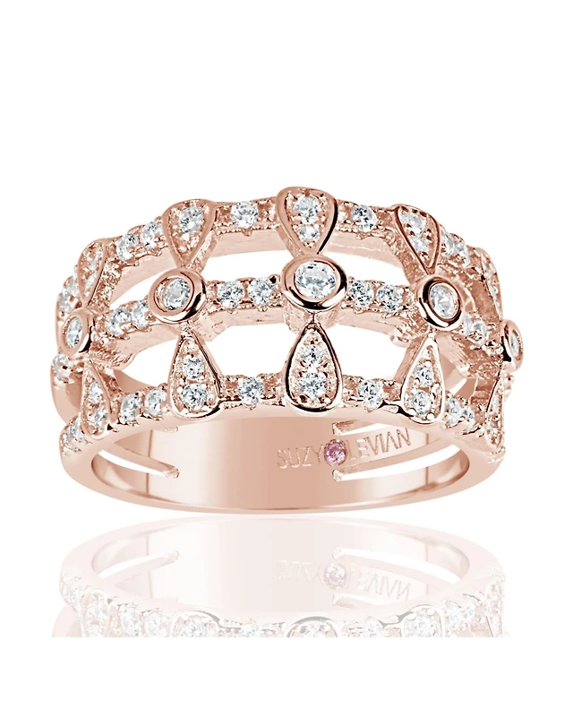 Suzy Levian Rose Sterling Silver Cubic Zirconia Three Row Multi-Shape Ring