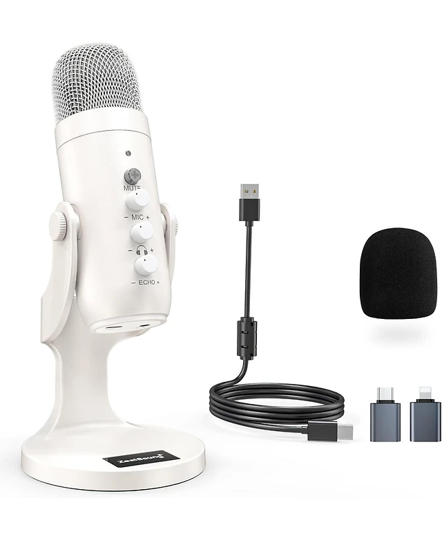 ZealSound Usb & 3.5mm Microphone with Type-c Adapter, Echo Volume, Tripod Stand, Pop Filter for Asmr, Video Recording, Streaming, Discord