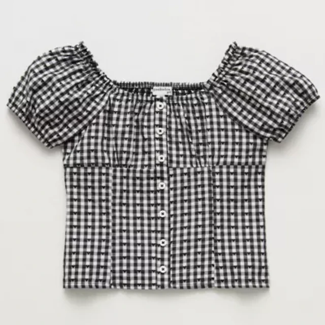 Eyeshadow Big Kid Girls Straight Neck Short Sleeve Babydoll Top
