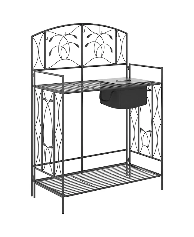 Outsunny Folding Potting Bench Table Build-In Bag with Cover Black