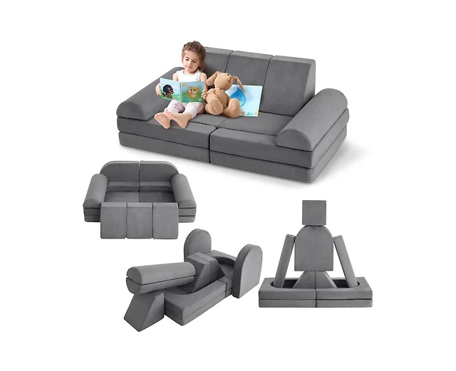 2-in-1 Convertible Kids Sofa with Velvet Fabric
