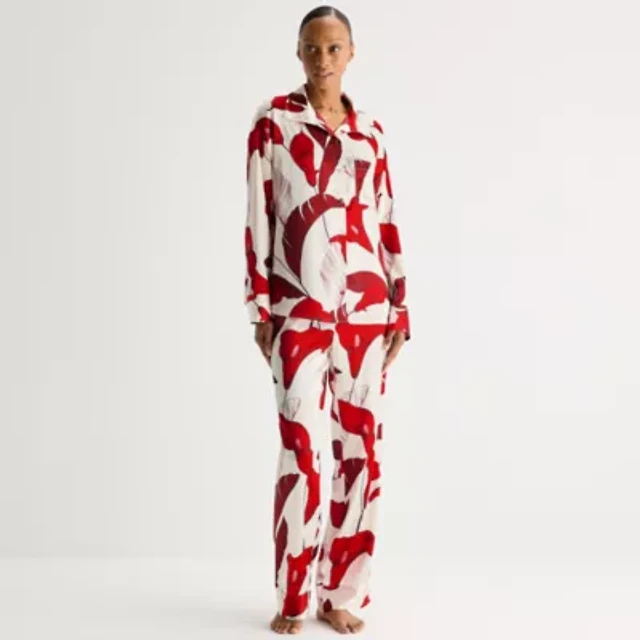 Ambrielle Womens Satin Long Sleeve 2-pc. Pajama Sets