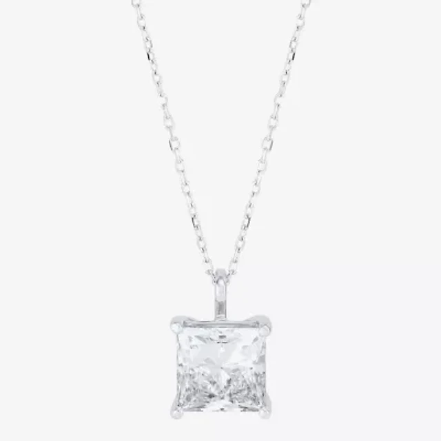 ( H-I/SI2 ) Womens 3 CT. T.W. Lab Grown White Diamond 14K Gold 18 Inch Princess Pendant Necklace