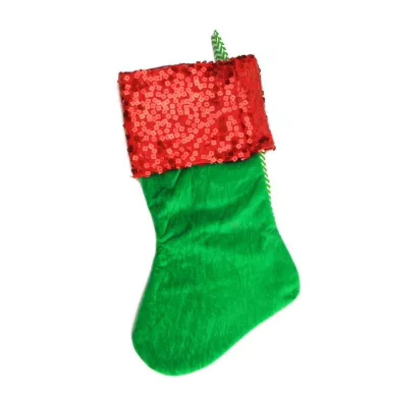 It's Christmas! Your favorite time of the year. This vibrant-hued stocking with a sequin cuff is a must-have for your festive decor. Fill it with candies and goodies and surprise your loved ones. This beautiful addition helps create a festive vibe.