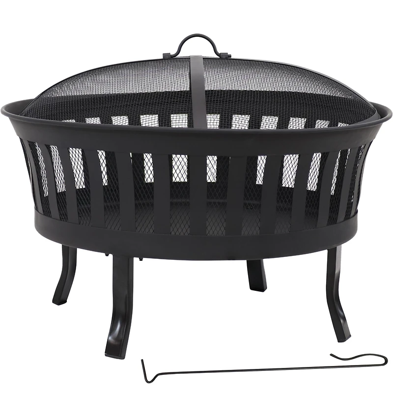 Enjoy time with loved ones in the backyard or quietly rest in solitude around the fire in this contemporary, mesh stripe fire pit with an included spark screen and poker. This durable fire pit features steel mesh stripe cutouts to promote optimal airflow that helps the fire burn better. A spark screen and fire pit poker are also included for added safety to maneuver logs from a safe distance and protect loved ones from spare, flying sparks. This fire pit is made with strong steel with a high-temperature paint finish that can easily withstand the heat of the fire and even harsh weather conditions for long-lasting use. Keep the fire going all night long in any backyard or campsite. This fire pit comes with all the necessary hardware for assembly (except a Phillips screwdriver) to enjoy this fire pit almost right out of the box.