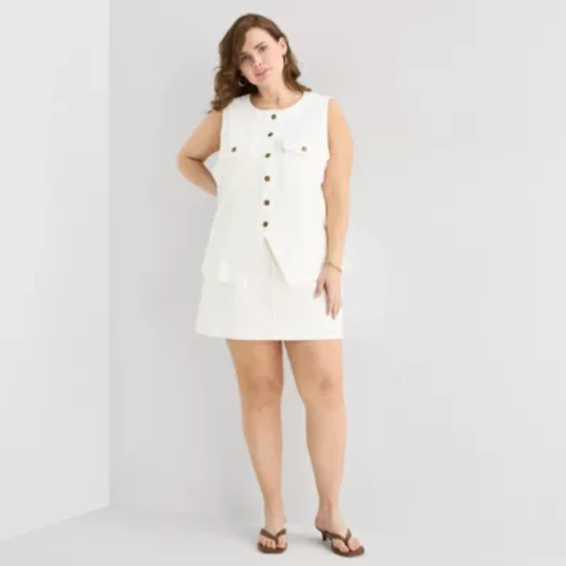 a.n.a Womens Plus Mid Rise Mini Denim Skirt