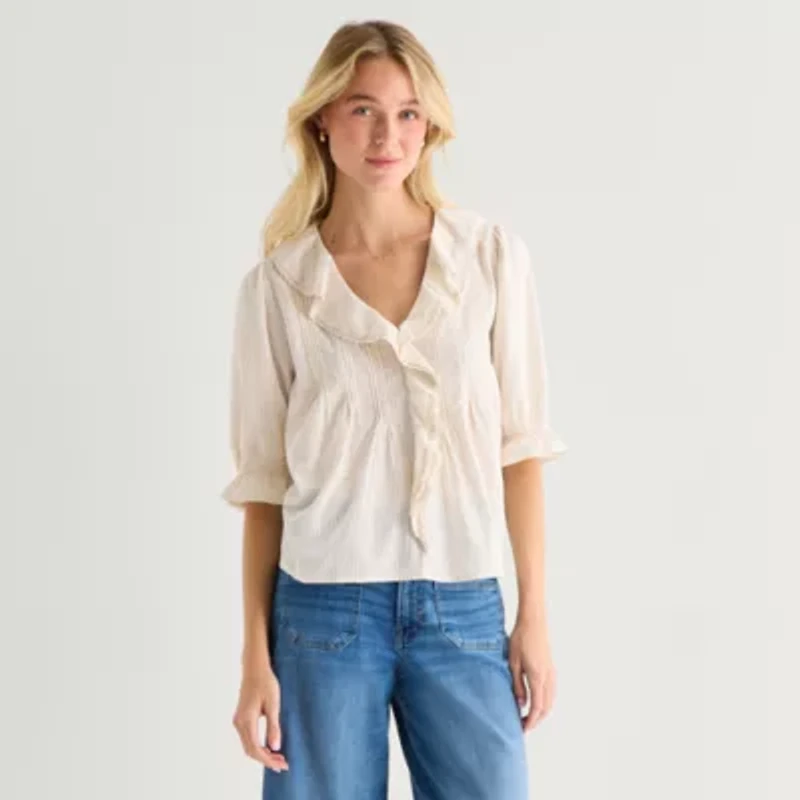 a.n.a Womens V Neck Elbow Sleeve Blouse
