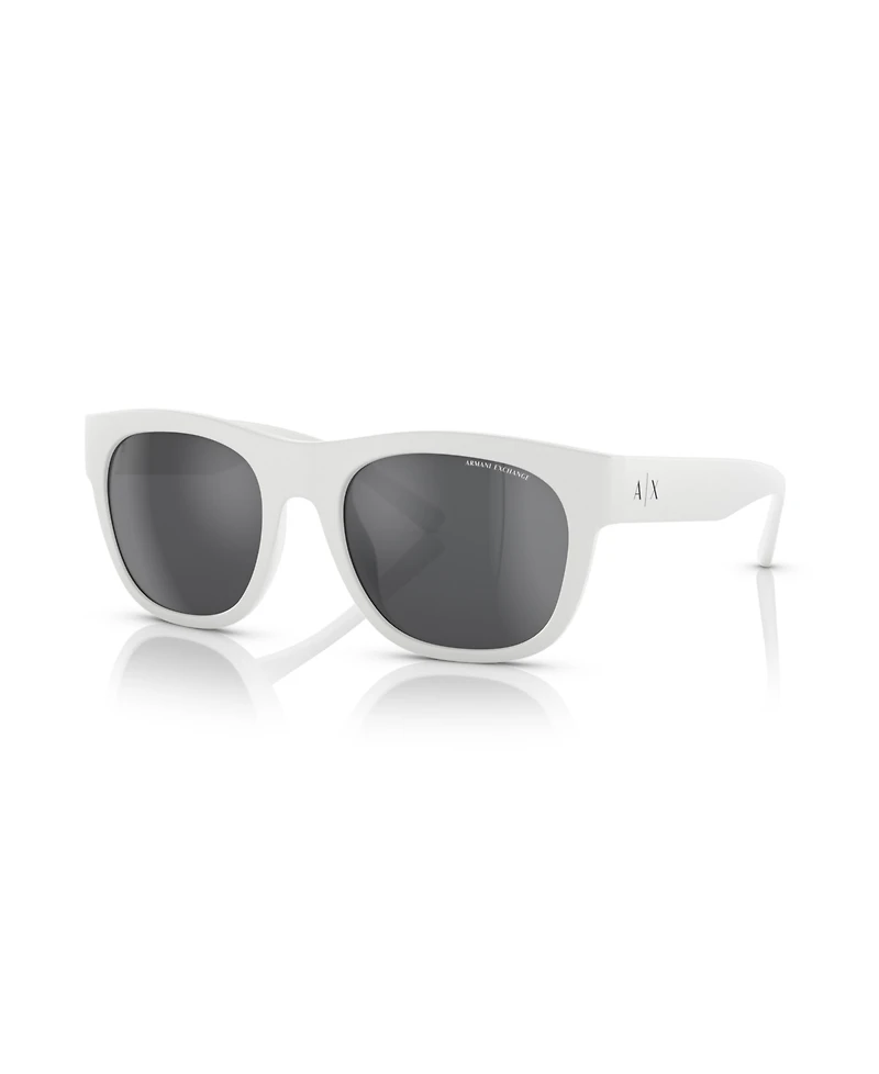 Turn heads with the Armani Exchange AX4128SU sunglasses. The sleek rectangular frames in a polished white finish exude modern sophistication. Crafted from lightweight nylon and propionate, they offer all-day comfort. Mirrored silver lenses add a bold metallic touch while reducing glare, perfect for sunny adventures. Designed with a universal fit, these Armani Exchange sunglasses for men redefine effortless style.
