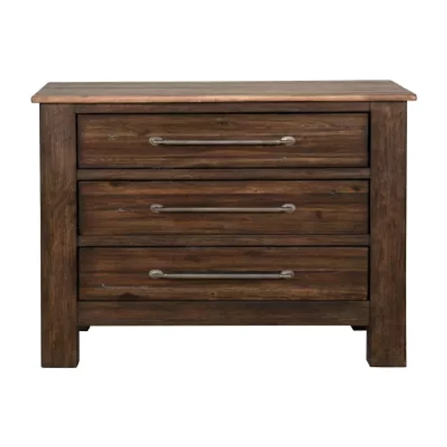 Yigii Rustic 3 Drawer Nightstand With Leaf Carvings