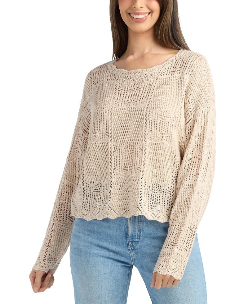 Cozy up in modern style with this Bcx openwork knit sweater, showcasing a crew neck. Long sleeves and a relaxed fit ensure comfortable, easygoing wear suitable for everyday styling.