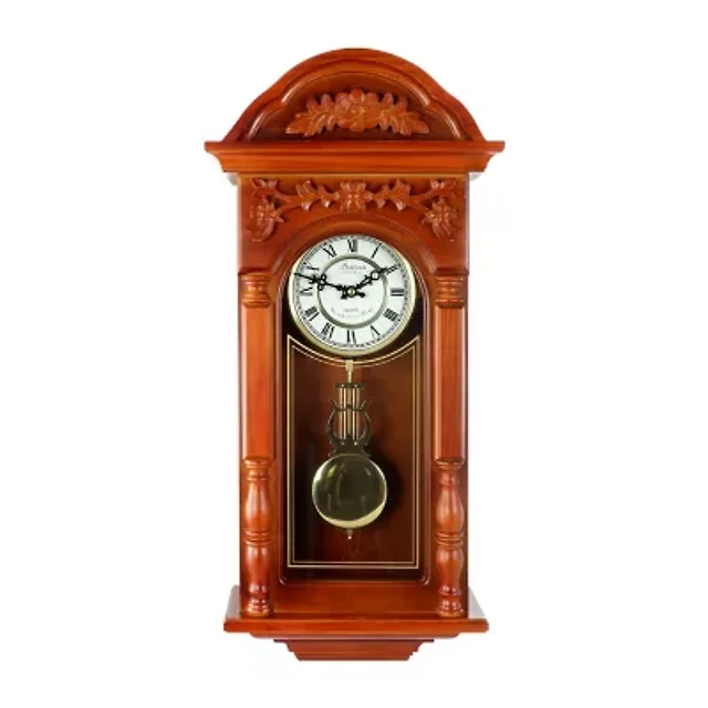 Bedford Clock Collection Chiming Pendulum Antique Cherry Oak Finish Wall Clock