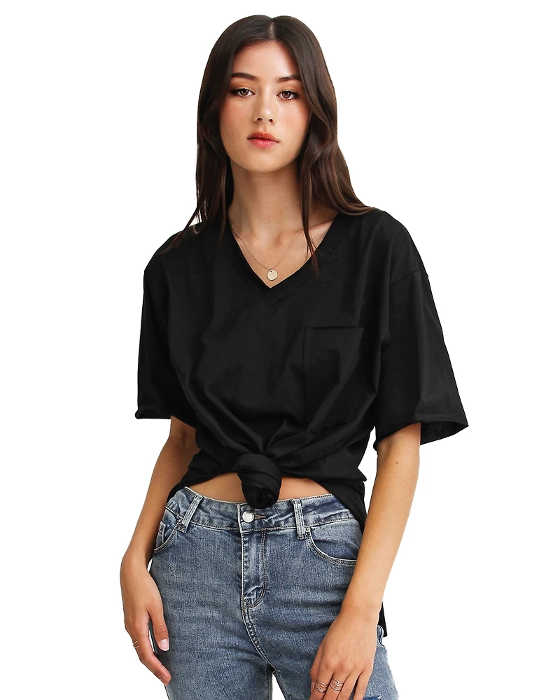 Upgrade your basic tee for the Brave Soul Long Sleeve T-Shirt for a streetwear inspired look. With high slits and a raw hem, tie up the front for some extra shape and skin while still embracing a high-low hem.