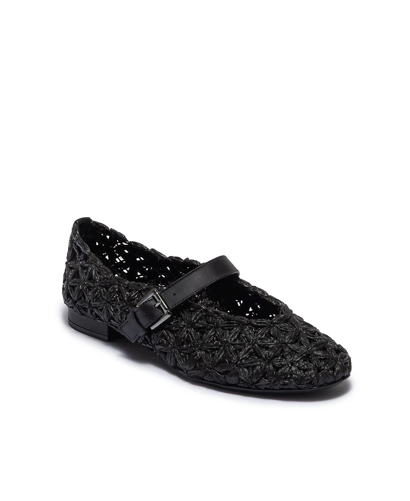 Classical femininity. Our ballerina takes a seasonal twist with artisanal star woven raffia and complimentary premium leather mary jane strap for perfecting support and effortless feminine style.