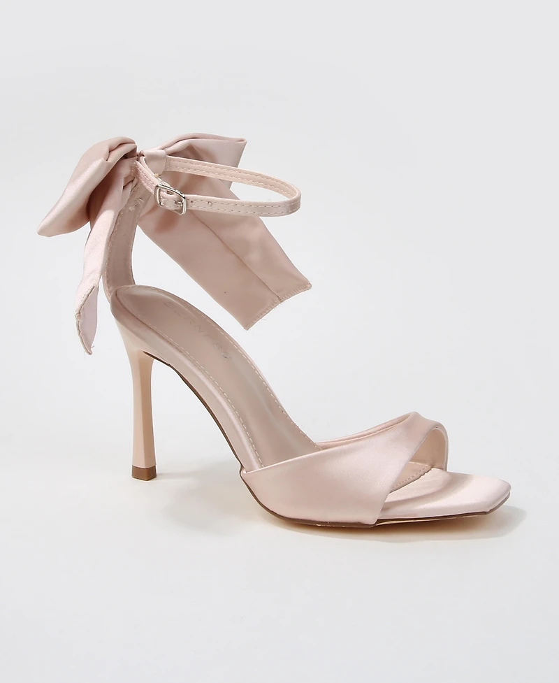 Exude timeless romance and modern flair with the Fiorella stiletto sandals. Defined by a dramatic, oversized satin bow at the heel, these sandals feature a contemporary square toe and a sleek, high-fashion silhouette.