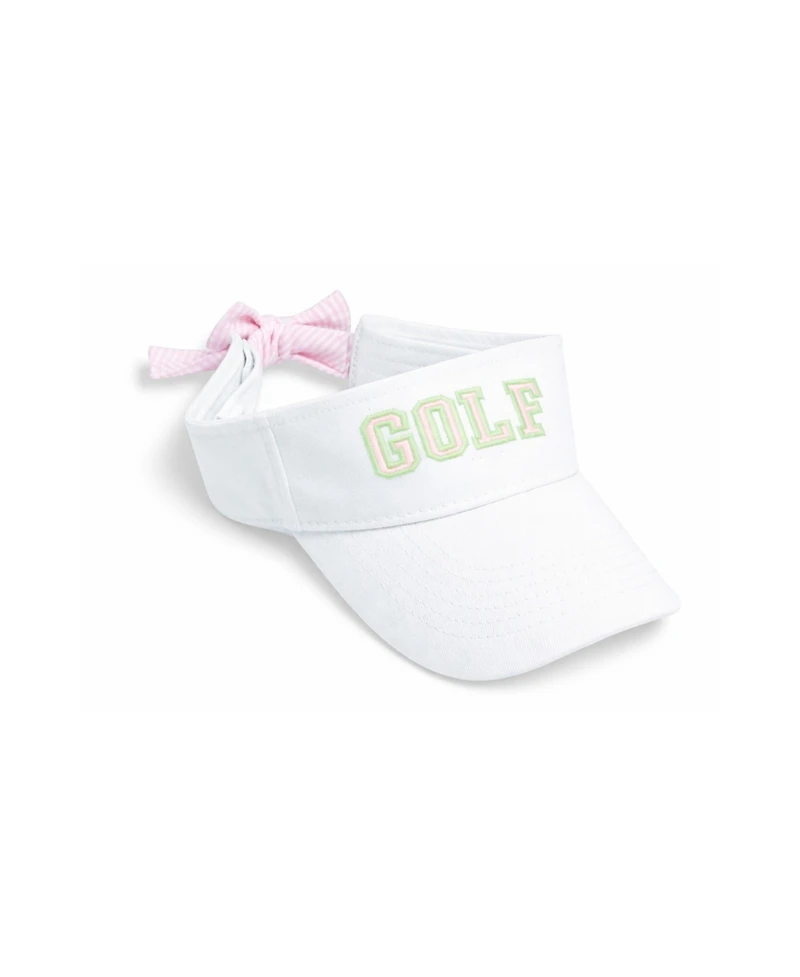 Perfect her swing and her style with the Golf Bow Visor, designed for little golfers who love to look polished on and off the course. Featuring Bits and Bows signature seersucker bow at the back and a classic visor silhouette, this piece combines playful charm with practical sun protection. Lightweight and comfortable, the visor keeps the sun out of her eyes while the statement bow adds the perfect finishing touch to every golf outfit. Whether she s heading to the driving range, the course, or the clubhouse, this visor is made for girls who love the game.