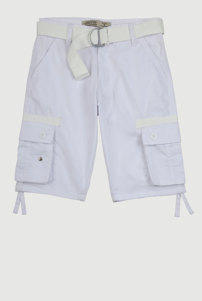 Boys Twill Tie Hem Belted Cargo Shorts