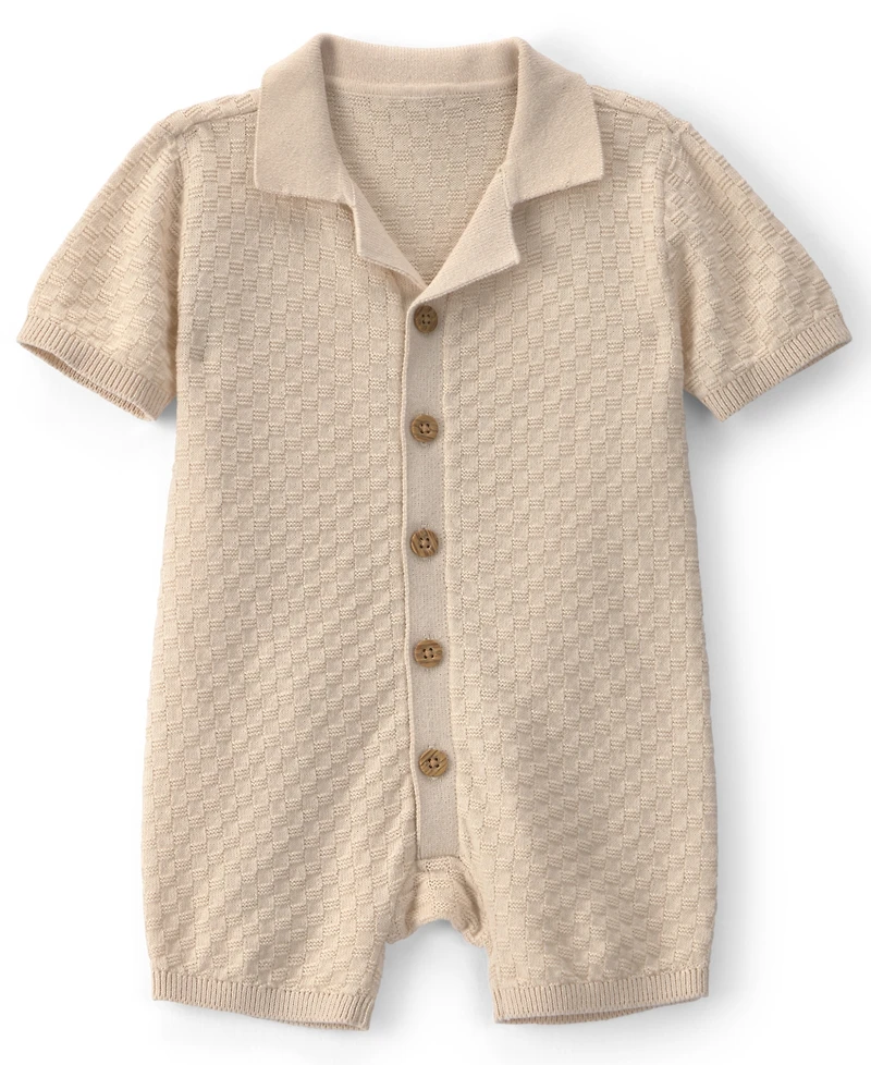 Elevate your little one's wardrobe with this charming cotton romper, designed for comfort and ease. Made from soft knit fabric, it ensures all-day wearability without compromising on style. The button-up front makes dressing a breeze, while a vintage interlock pattern pattern keeps things fashionable. Perfect for sunny days or layering in cooler weather, this versatile piece adapts to any season. Parents will appreciate the durable quality, while kids will love the freedom to explore. A must-have for every infant's closet.