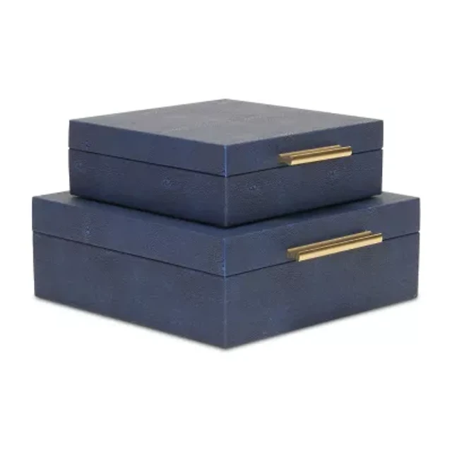 Cheungs Navy Blue Faux Shagreen Square 2-pc. Decorative Box