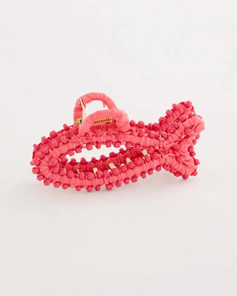 Elevate your accessories for the season with this fantastical ocean-inspired raffia hair clip. A simple and beautiful jaw closure hair clip to pin your hair back during the warmer months.