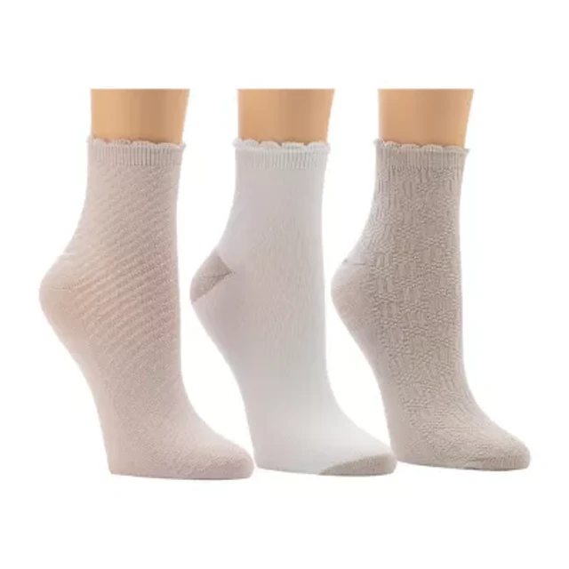 Cuddl Duds Scallop Welt Rib Womens Multi-Pack 3 Pair Quarter Ankle Socks
