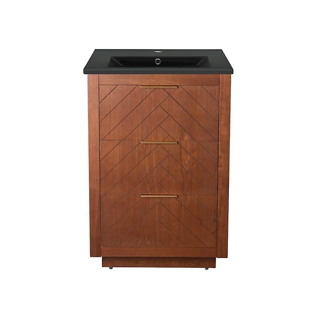 Daxton 24" Freestanding Bathroom Vanity in Brown Oak with Black Sink Top