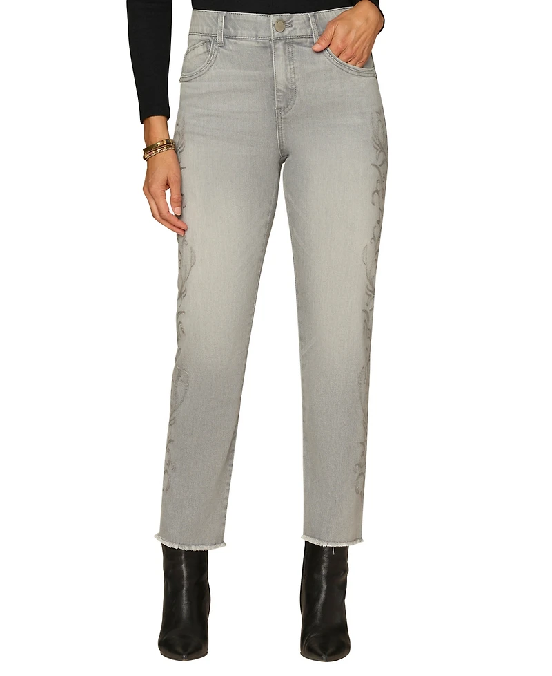 Built with AbSolution technology for shaping support, these slim straight jeans from Democracy include a cascading detail and clean-fray finish. A high-rise waist delivers a contemporary fit.