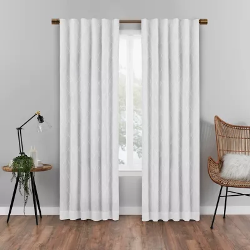 Eclipse Nora Geometric Embroidery Rod Pocket Back Tab Blackout Single Curtain Panel