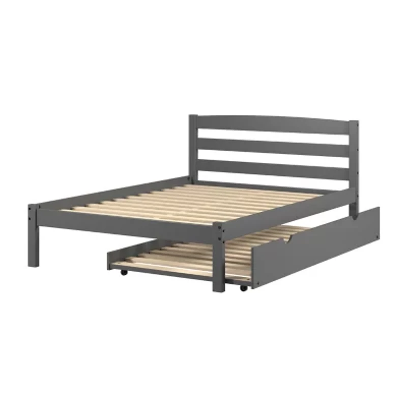 This Econo bed has a simple style that will match any decor. The solid pine wood construction gives this bed superior durability that is sure to last for years to come. This full bed comes with a mattress ready slat system eliminating the need for box springs. The included twin trundle is perfect for guests.