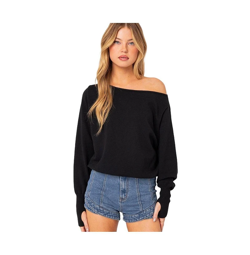 Edikted Womens Off Shoulder Oversized Sweater