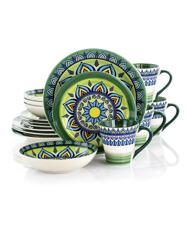 Elama Zen Mozaik Green 16 Pc. Dinnerware Set, Service for 4