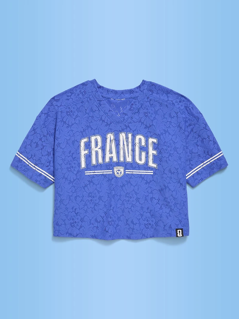 FIFA World Cup 26™ France Boxy Lace V-Neck T-Shirt for GirlsFIFA World Cup 26™ France Boxy Lace V-Neck T-Shirt for Girls