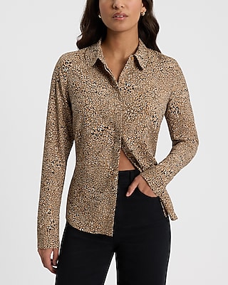 Slim Polka Dot Ruffle Neck Portofino Shirt