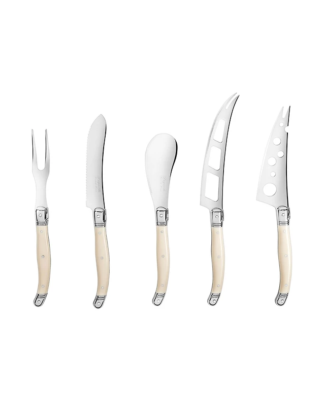 French Home 5-Piece Laguiole Cheese Knife, Fork, and Slicer Set with Faux Ivory Handles