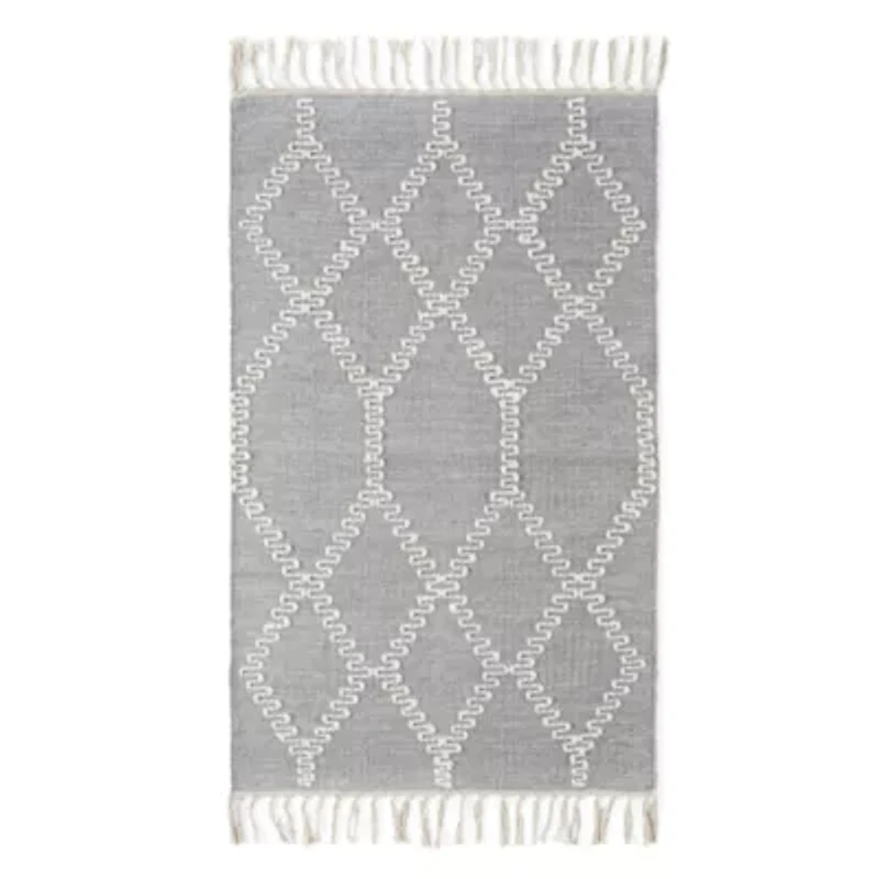 This Goa wool scatter rug features an appealing boho style pattern and fringed trims for a chic home decor upgrade to any room. It's made from 100% wool and comes in a rectangular shape.