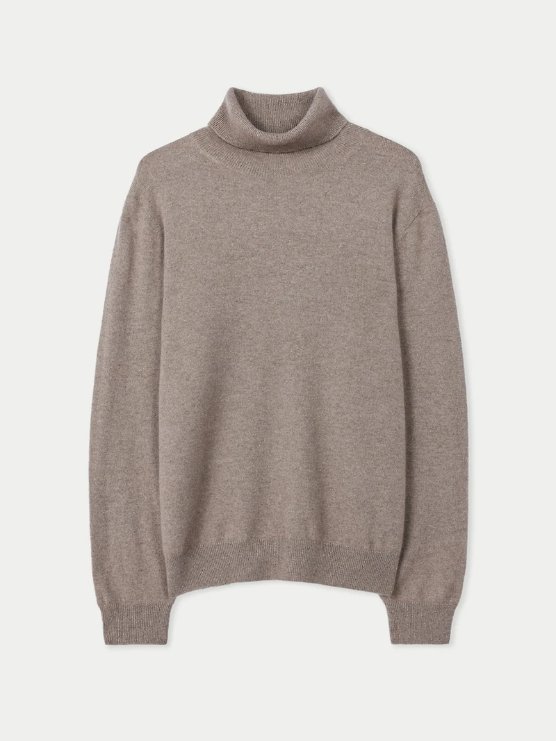 A true wardrobe foundation, this men's turtleneck balances warmth and sophistication. Knitted with Mongolian cashmere, it s exceptionally soft, lightweight, and versatile—easy to layer under tailoring or wear on its own, with a broader shoulder that adds structure and a sharper silhouette.