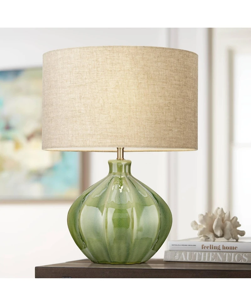 Gordy Modern Accent Table Lamp Handcrafted 20.5" High Ribbed Green Ceramic Oatmeal Fabric Drum Shade Decor for Living Room Bedroom House Bedside Night in Ponce, PR