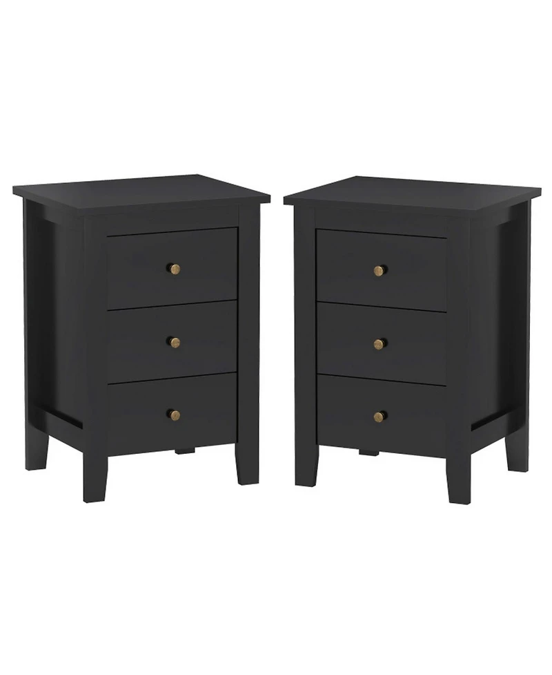 Delivered as a matching pair, these three-drawer nightstands provide symmetrical bedside storage with classic design appeal. Each unit features three smooth-sliding drawers with handles for organized storage of books, electronics, and personal essentials. The open platform top supports lamps, alarm clocks, and decorative items with a 66 lbs capacity per unit. Constructed from durable chipboard and Mdf, this set offers coordinated bedroom furnishing at an accessible footprint.
