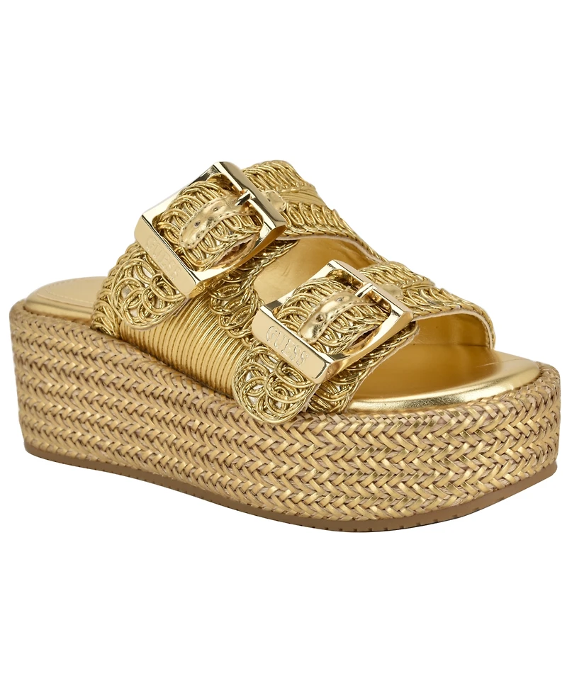 Guess Women's Binks Double-Buckle Woven Platform Wedge Sandals