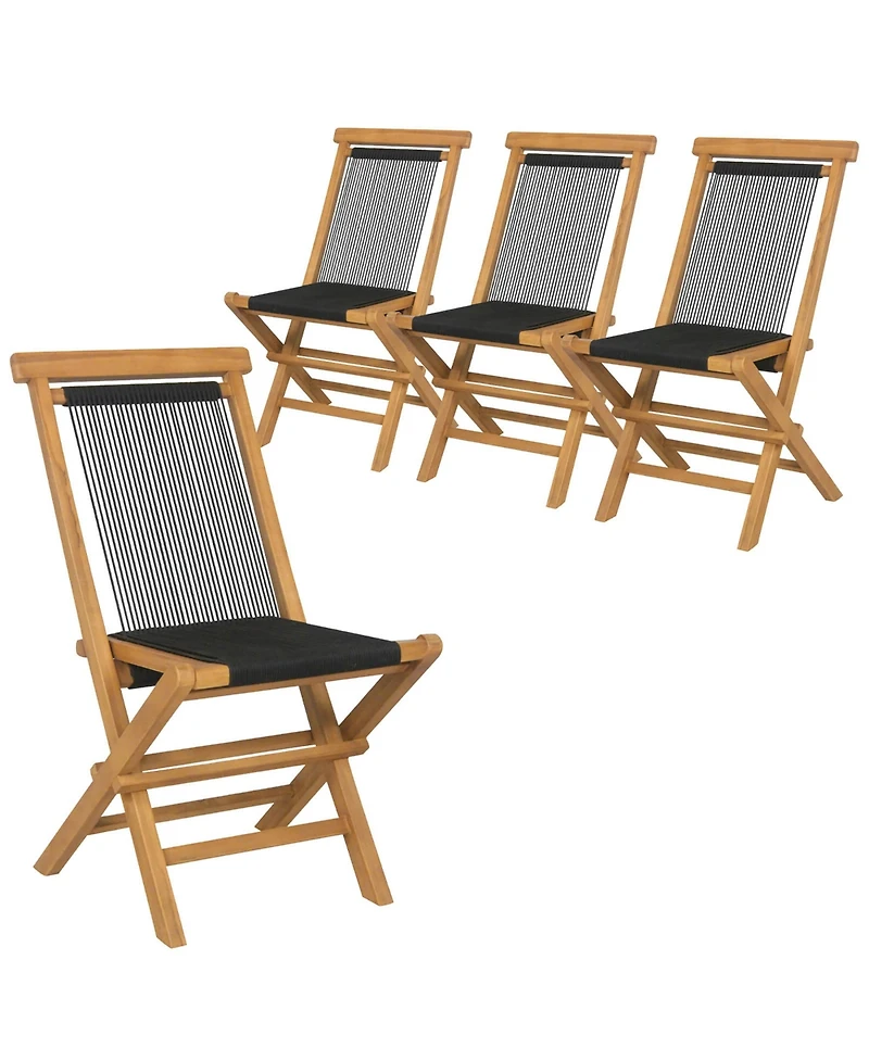 Enhance your outdoor living space with this elegant set of patio chairs. Constructed with premium teak wood, these chairs are Sturdy and crack-resistant for long-lasting enjoyment. The water-based varnished surface is easy to maintain and adds a touch of sophistication. The woven rope seat and back are not only visually appealing but also resistant to fading. Featuring a quick-folding design, these chairs can be conveniently stored or transported wherever needed. The high backrest and ergonomic angle ensure maximum relaxation, while the stable X-shaped structure and reinforced crossbar provide added stability. Enjoy ultimate outdoor comfort and style with these portable folding chairs.Features:Premium teak wood provides strong support and stabilityWater-based varnished surface for easy upkeepStylish woven rope seat for added visual appeal