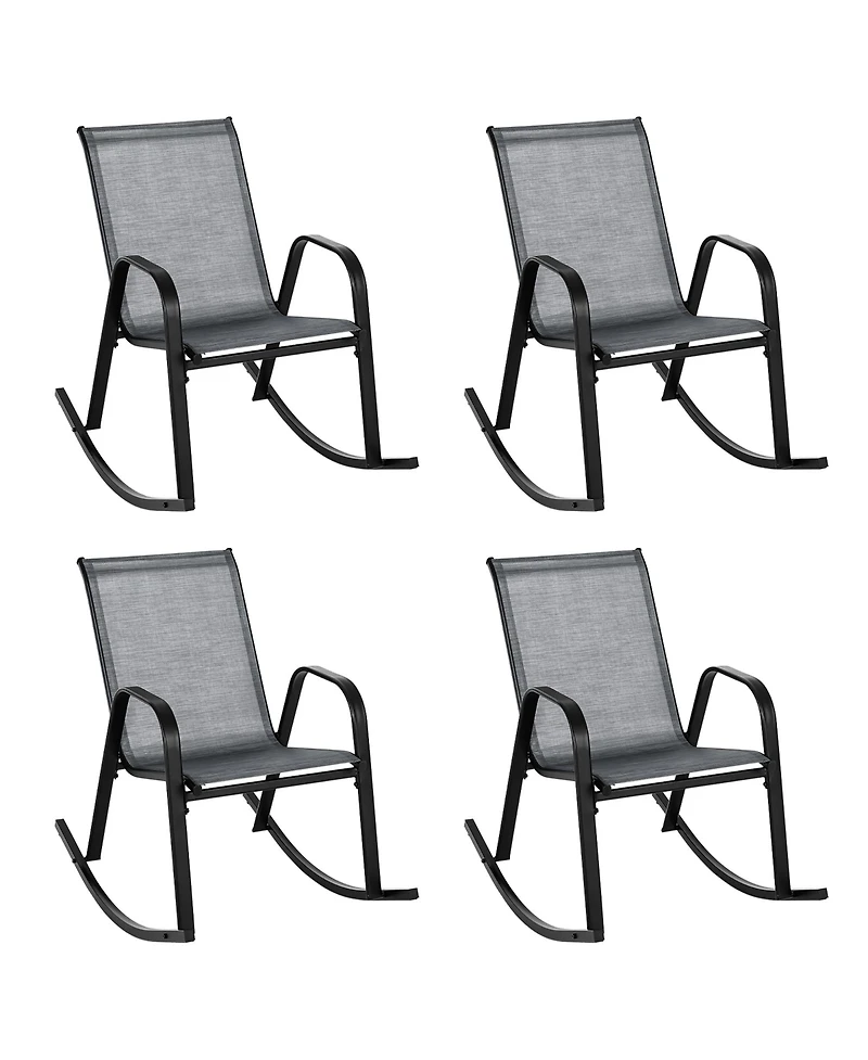 Gymax 4pcs Patio Rocking Chair Heavy-Duty Metal Rocker Outdoor Anti-Slip