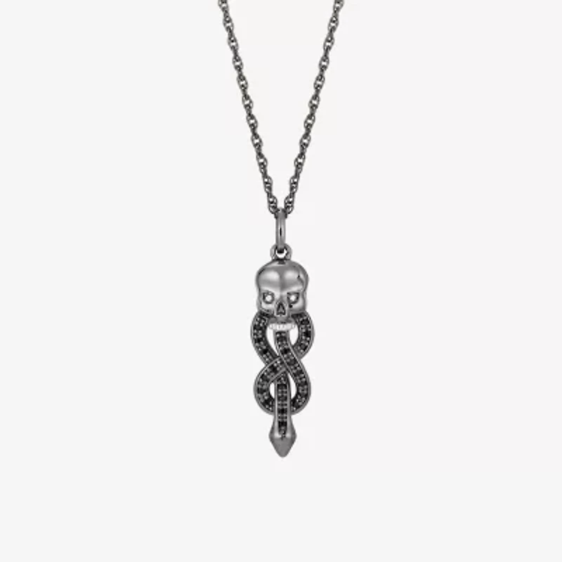 Harry Potter (F / Si2) Womens Diamond Accent Genuine Black Spinel Sterling Silver Skull 18 Inch Pendant Necklace