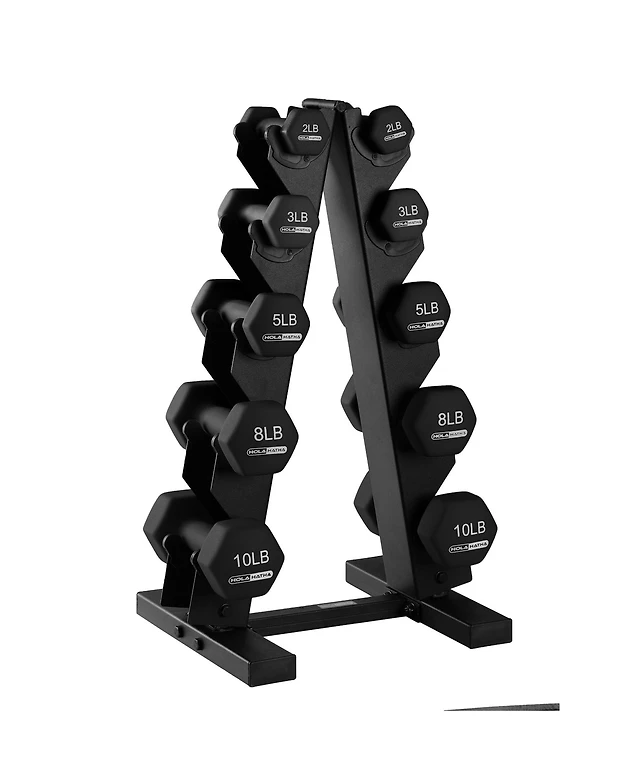 HolaHatha 2, 3, 5, 8 and 10 Pound Neoprene Dumbbell Weight Set with Storage Rack