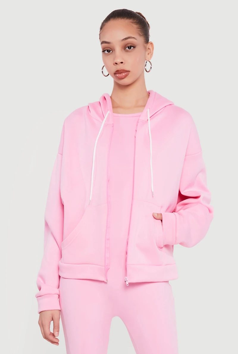 Hooded Zip Front Fleece Lined Sweatshirt